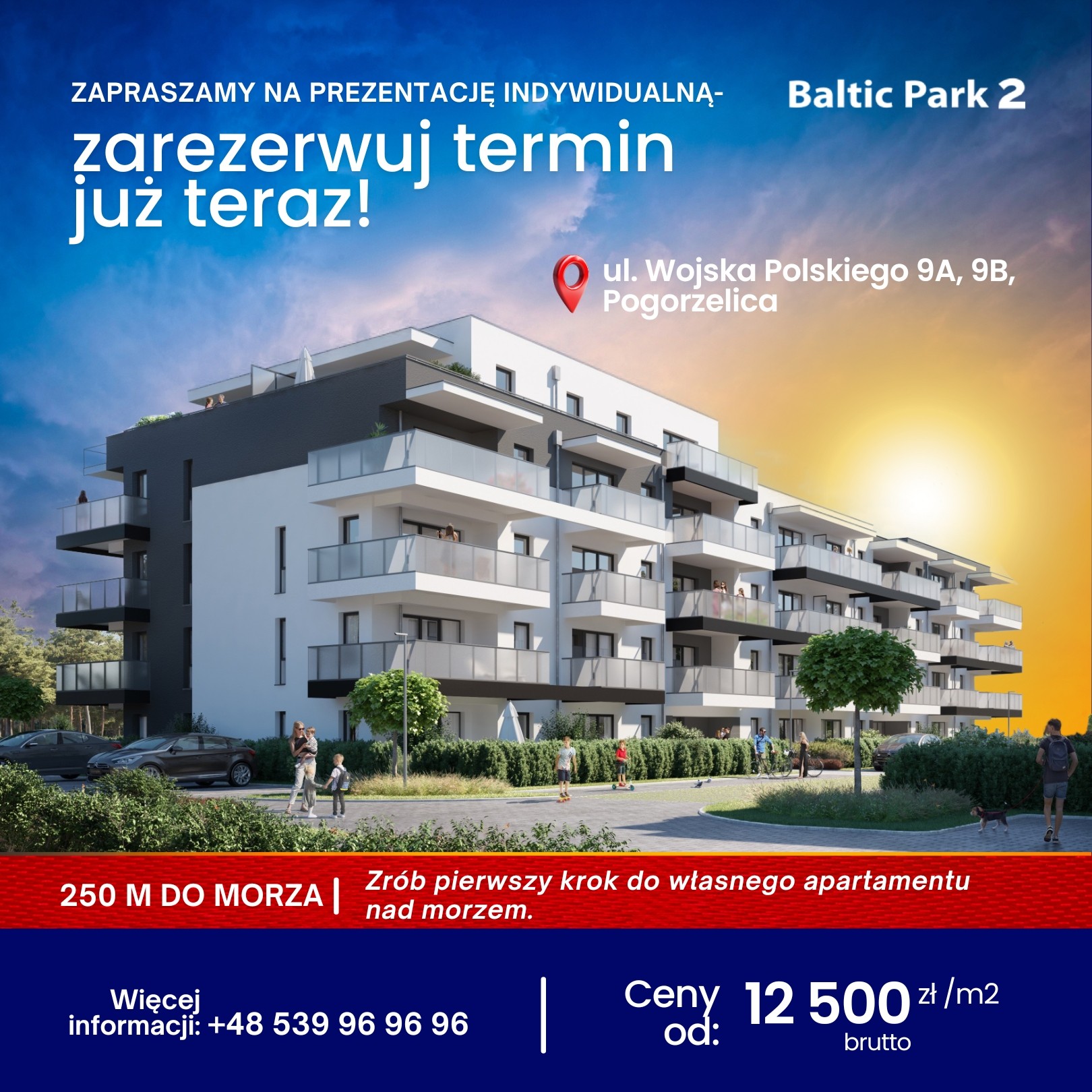 Własna nieruchomość nad morzem? W Pogorzelicy oferujemy wygodne apartamenty inwestycyjne w odległości zaledwie 250 metrów od morskiego brzegu! Baltic Park 2 Pogorzelica to apartamenty na sprzedaż tuż obok szerokiej plaży, która kilkukrotnie otrzymała wyróżnienie „błękitnej flagi” za spektakularną czystość. W odległości spaceru znajduje się las sosnowy, rezerwat przyrody Liwia Łuża i jezioro Konarzewo. Tu spokojnie wypoczniesz.